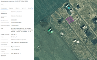 | Кадастровый номер земельного участка | 16:32:070704:1629 |