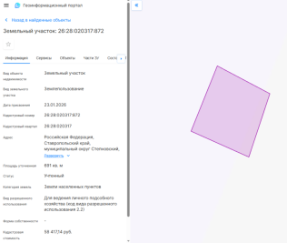 | Кадастровый номер земельного участка | 26:28:020317:872 |