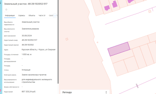 | Кадастровый номер земельного участка | 46:29:102217:1156 |
