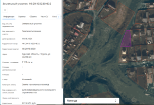 | Кадастровый номер земельного участка | 46:29:103230:632 |
