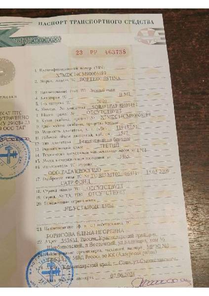 Автомобиль легковой, марка: VORTEX, модель: ESTINA, VIN: X7MDC14CM90006189, гос. рег. номер: К544УМ193, год изготовления: 2009